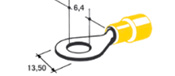 Juhtmeliidised rõngas, kollane 6,4mm 25tk
